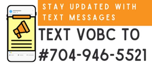 To send timely updates to neighbors we have a new text message update system. Sign up for updates by texting VOBC to #704-946-5521.